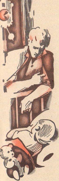 © Макарова Наталья 1973 ![]() Шел 47-год. Отец в то время еще служил на флоте в редакции журнала «Краснофлотец». Как и все в то время, мать и отец работали с утра до ночи: уходили, когда я еще спала, и возвращаясь, заставали меня уже в постели. Они желали мне спокойной ночи и садились ужинать. Под их тихую беседу я мгновенно засыпала. Однажды я уловила беспокойство в разговоре отца с матерью, и, чтобы их не огорчать, притворилась спящей, однако ловила каждое слово. Речь шла о том, что отцу стало негде работать. Прежде он писал статьи, оставаясь в редакции на ночные дежурства. Но недавно дежурства отменили, помещение редакции стали закрывать на ночь. — Ума не приложу, что делать, — сокрушалась мама. — Работы — поверх головы. Днем свои статьи писать — минуты нет, — сказал отец. — А ночью теперь — негде... Дело было в том, что мы жили всей семьей в бабушкиной комнате. Была моя бабушка совсем уже не молода, очень уставала в своей поликлинике и рано ложилась спать. Она требовала, чтобы все ложились спать вместе с нею: при свете бабушка уснуть не могла. Несколько дней, а вернее вечеров, в нашей большой комнате было неспокойно. Мама старалась помочь папе — прикрывала настольную лампу темным платком, папками загораживала, но бабушка все сердилась: — Закрывай-не закрывай — все равно не усну, если в комнате кто-то не спит... Вот получите свою комнату, тогда пишите! В один вечер мама даже расплакалась и стала доказывать, что у папы талант. Но бабушка упрямо повторяла, что отец может подождать до лучших времен... ...Однако отец не стал дожидаться лучших времен, а стал по ночам уходить работать в кухню. Бабушка не ожидала такого решения. Ей было неловко перед соседями — это я почувствовала. Я слышала, как она увещевала отца: — Ну что вы за человек! Чего вам надо! У вас серьезная и почетная работа... Ну зачем вам эти писанины? И неужели не противно сидеть в закопченной кухне, да и соседи будут недовольны. — Да что вы, — успокоил бабушку отец, — мне там прекрасно работается... Надо сказать, что никогда в жизни я так и не услышала от него, что ему где-то неудобно или плохо. Но мне было жаль отца, и я решила навестить его ночью на кухне... Но как это сделать? И вот однажды вечером я стала ждать, пока уснут мама и бабушка. А чтобы не уснуть — спать хотелось отчаянно! — я «рассмеивала» себя стихами и баснями, которые знала на память. Потом на цыпочках скользнула по комнате, по коридору и подкралась к кухне: мне хотелось подбежать к отцу и закрыть ему ладонями глаза. Ни за что не угадает — кто! Осторожно приоткрыла я кухонную дверь и... замерла на пороге. Это была наша кухня — и не наша! Все было на своих местах, и все — иначе. Горевшая обычно под потолком унылая лампочка — была выключена. Во мраке потонули и закопченные за время войны стены, и поржавевшая раковина с отбитым углом. Яркий, заставивший меня сощуриться свет шел от настольной лампы на нашем столе... Как же он преобразился, этот старый стол! Исчезли разнокалиберные кастрюли, вместо них лежали стопки книг, стояла чернильница. Отец писал. Второе, что меня поразило — тишина! В кухне были все наши соседки — каждая делала что-то: тетя Нюра стирала, тетя Надя возилась у плиты, а Дуся, примостившись у раковины — мыла цветы. Обычно в кухне стоял шум и гам: тетя Надя без насмешек и подковырок не могла и шагу ступить, тетя Нюра (ее я боялась больш